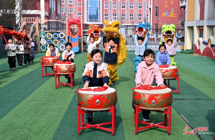 2026年3月20日,在河南省商丘市夏邑县育才小威龙幼儿园NBA篮球下注app官方版,小一又友饰演舞狮,欢庆“二月二”。(苗育才摄/光明图片)