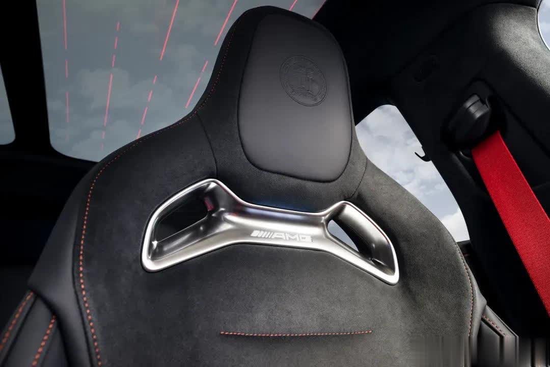 梅赛德斯可能嗅觉在前排头枕上的AMG徽章还不够显着,于是在玻璃天窗上也放了一个超大尺寸的。标志阿法特巴赫的苹果树,与凸轮轴、气门善良门弹簧图案一谈点亮(天然莫得内燃机)。