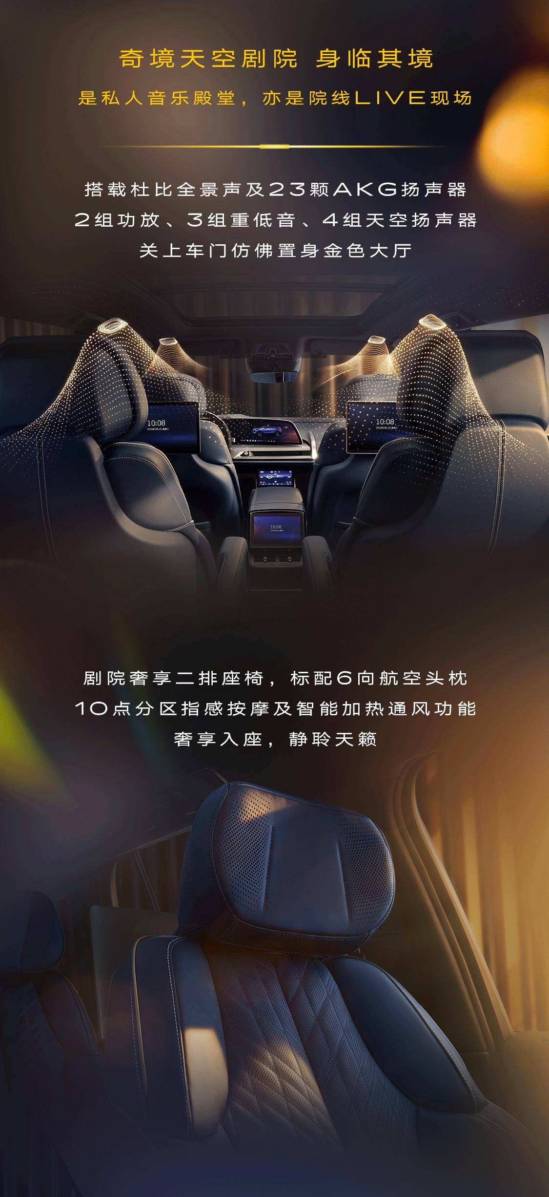 内饰方面,凯威德最引东说念主注筹画是搭载了一块33英寸环幕式9K超视网膜曲面屏,横剖判盘这个词中控台区域,提供极致的视觉体验。同期,为兼顾实用性与驾驶安全性,车辆保留了部分实体按键,如音量更正和空调风量戒指旋钮,通俗驾驶者在行驶历程中进行盲操作。音响系统经受23扬声器的AKG Studio音响,支捏Dolby 7.1.4杜比全景声本领,可营造出千里浸式的剧院级听觉享受。