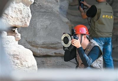 云冈计划院责任主说念主员在云冈石窟进行数字化信息采集。 新华社记者 杨朝阳摄