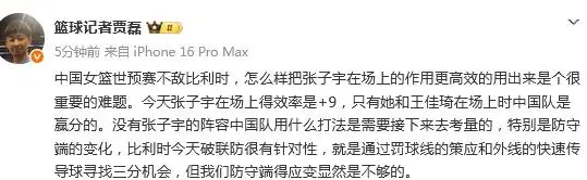 篮球记者贾磊发文点评: