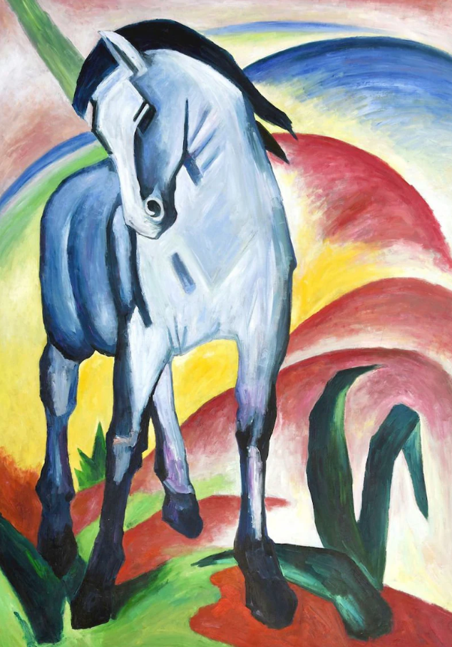 在以储藏马题材艺术作品知名的德国伦巴赫好意思术馆中有一幅画作引东谈主关心。画面中,一匹充满活力的蓝色小马直接地伫立着。它歪着头,仿佛堕入千里念念。白色在它粗线条的躯壳轮廓中能干,普遍的藏蓝色则印刻在它的蹄子和鬃毛上。小马周围则被朱红色、绿色、黄色等多种颜色包围着。这即是该馆馆藏作品《蓝马一号》(如图)。其创作家弗朗茨·马克是慕尼黑极具影响力的透露目标艺术家团体“蓝骑士”的创立者之一,他本东谈主就是画马出名。有评述家觉得,《蓝马一号》赋予了马一些东谈主类的特征,并具有犀利的象征道理。蓝色行动精神的象征,驯服了物资。“《蓝马一号》把德国东谈主对马的崇拜推到一个新的高度。”柏林文化学者佩特兰德尔向《环球时报》特约记者解释谈,在德国历史文化中,马是弥留的坐褥、构兵、知道和酬酢用具,更象征效用量、解放与圣洁。