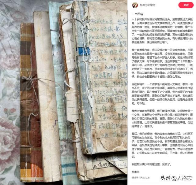 杨本芬径直承认我方袭用他东谈主语句的看成挣扎了写稿伦理,并向干系作者及总共读者致歉。