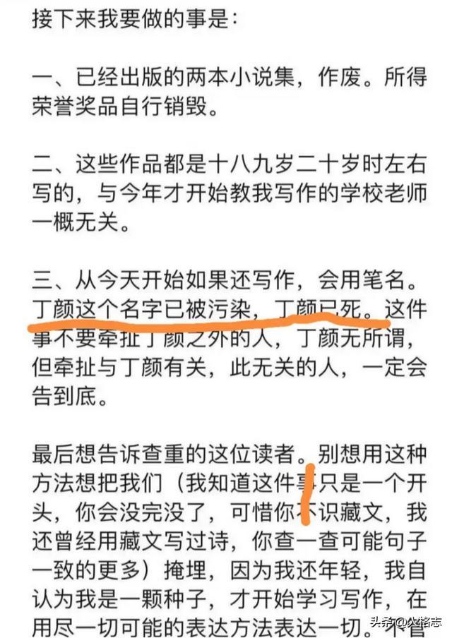可是,丁颜最终给出的回复是“丁颜这个名字也曾死了”,意指在遭受臭名后,她会换个名号再进行写稿。