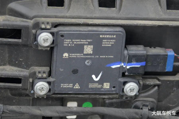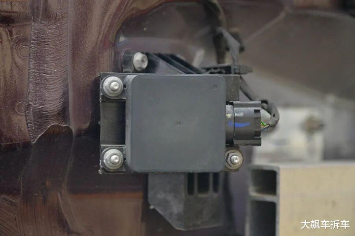 前保障杠与防撞梁之间,只须一个相比细长的保护泡沫,杠皮两侧配有两个4D角毫米波雷达。
