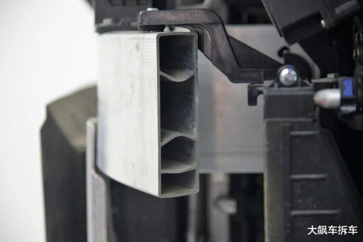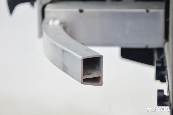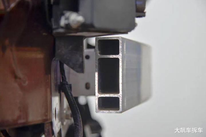 从截面能看到,防撞梁里面不仅有两说念波折横梁,下方还有一个横梁,来增强防撞梁的吸能恶果,如斯豪横的结构异常罕有。