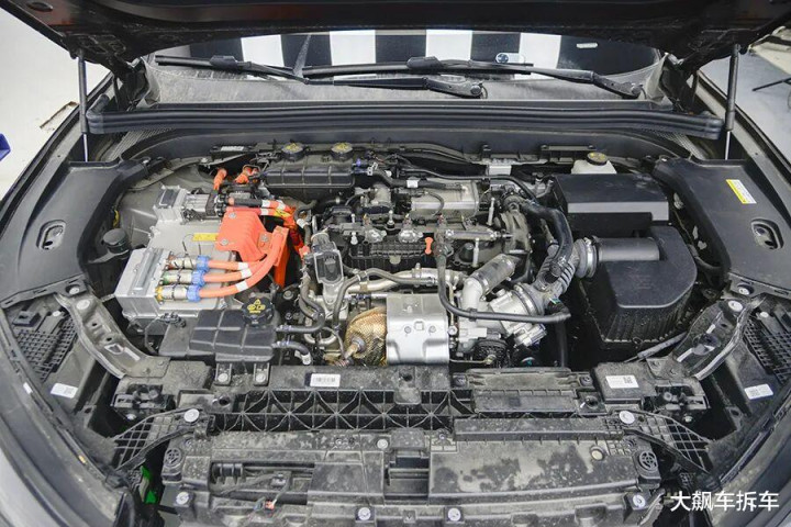 这辆是增程版车型,是以机舱内满满当当,而纯电版块则会有相比大的前备箱。