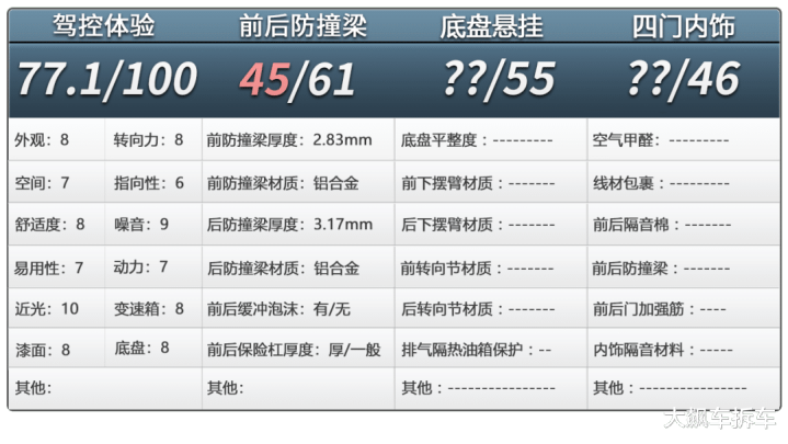 那么对于这辆车底盘的情况何如呢?还请接续谨防后续的拆车实践!(本文及视频中的测量数据论断不雅点仅对此辆车正经,测量数据对公示的实验圭表正经。)