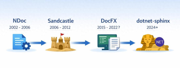 LeXtudio Inc. 通盘文档网站都依然基于开源的 Sphinx 基础活动搭建而况运行了好多年。自关联词然,我又回到了一个十年前就念念考过的问题,如何把 .NET API 文档生成和 Sphinx 内容顾问整合到一皆。为什么咱们不行奏凯用现存的 .NET 文档用具呢?谜底需要回溯 .NET 文档用具这二十五年来的历史,一个对于生态离别、战术革新,以及开源 .NET 社区得我方出手处置问题的故事。