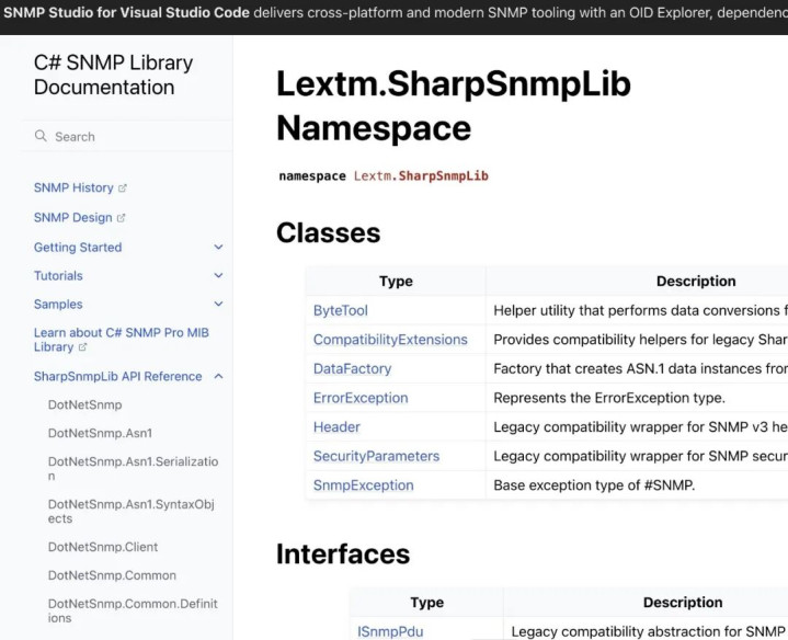 dotnet-sphinx 是结合 .NET 到 Sphinx 生态的最新尝试,亦然我写这篇著作的初志之一。想象一个方便活泼的敕令行用具,将 API 元数据并和洽成 Sphinx 兼容的输出,在这个 AI 用具依然十分雄壮的时期花不了若干时期。剩下的即是 API 参考文档和示例、指南内容被放在一皆,交给 Sphinx 系统处理,并生成最终网站。C# SNMP 文档仓库展示了最终收尾,遴荐 Furo 主题,有一致的导航、内置搜索和边栏。