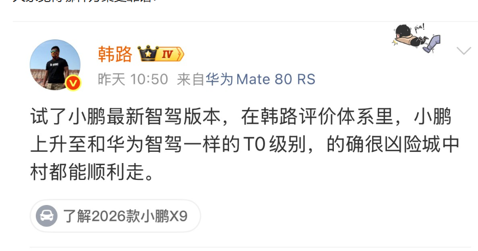 汽车智驾界限再迎重磅音书,行业大咖韩路直言小鹏最新智驾版块已置身与华为智驾同级的 T0 梯队,即便在东说念主车羼杂、路况复杂的城中村场景,也能斥逐顺利通行。这一评价让小鹏纯视觉智驾有斟酌再度成为焦点,要知说念小鹏坚合手的纯视觉门道,与华为深耕的激光雷达门道迥然相异,前者主打资本为止、数据迭代与无图泛化智力,后者聚焦安全冗余、极点场景可靠阐扬,两大时期门道各有中枢上风,业内也大齐合计短期内智驾市集将迎来双门道并存的表情。