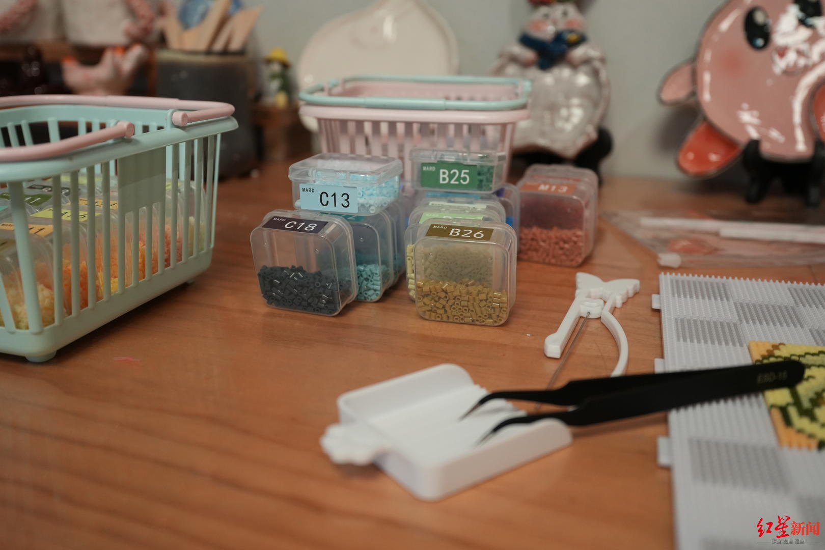把彩色塑料小豆子作为基本材料,胪列在模板上酿成创意图形,用熨画机加热使豆子旯旮融解粘连,就能制成包挂、雪柜贴等种种饰品……在成齐,拼豆DIY正成为年青东谈主外交、解压新模样。