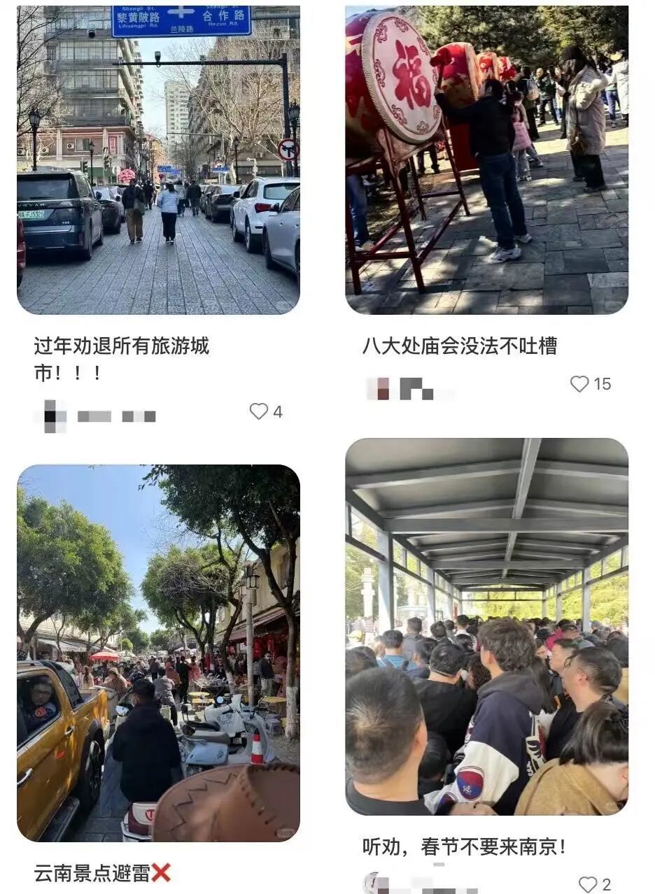 因为东说念主多和价高,过年旅游党在全世界发避雷帖。