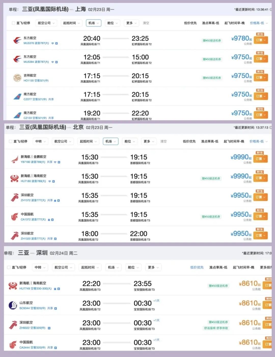 翌日三亚飞北京的机票仍是简略买到,3月3日以后机票价钱也回落到了日常的2000元以内。