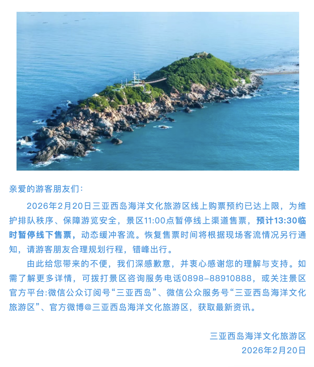 大岁首四,三亚西岛海洋文化旅游区便早早挂出“免战牌”: