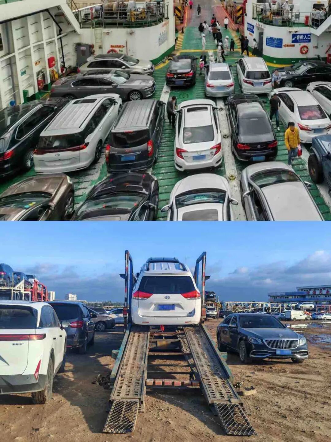 船上挥汗如雨,车门都打不开;船劣恭候上船的车没方位停,在口岸支配的放手工地聚成一团。