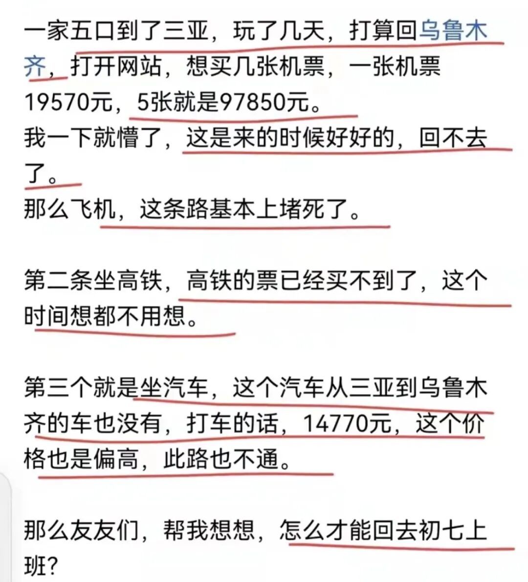 但东说念主在被逼急的时候,甚而会议论打车回乌鲁木皆。