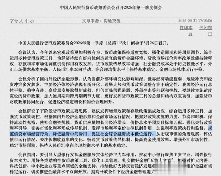 近日,中国东说念主民银行货币战略委员会在2026年第一季度例会中明确建议,将“程序信贷市集蓄意活动,裁汰融资中间用度,促进社会详尽融资本钱低位启动”。这一表述开释出金融监管抓续聚焦实体经济与住户部门减负、计帐融资法子不对理收费的明战胜号。