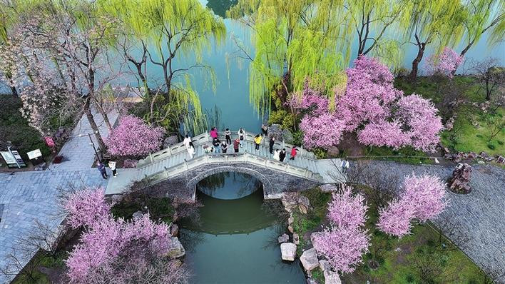 春日里,各地似锦绽放,好意思景如画,东说念主们纷纷走到户外,探春赏花。图为旅客在江苏省扬州市瘦西湖景象区赏景游玩。新华社发(都立广摄)