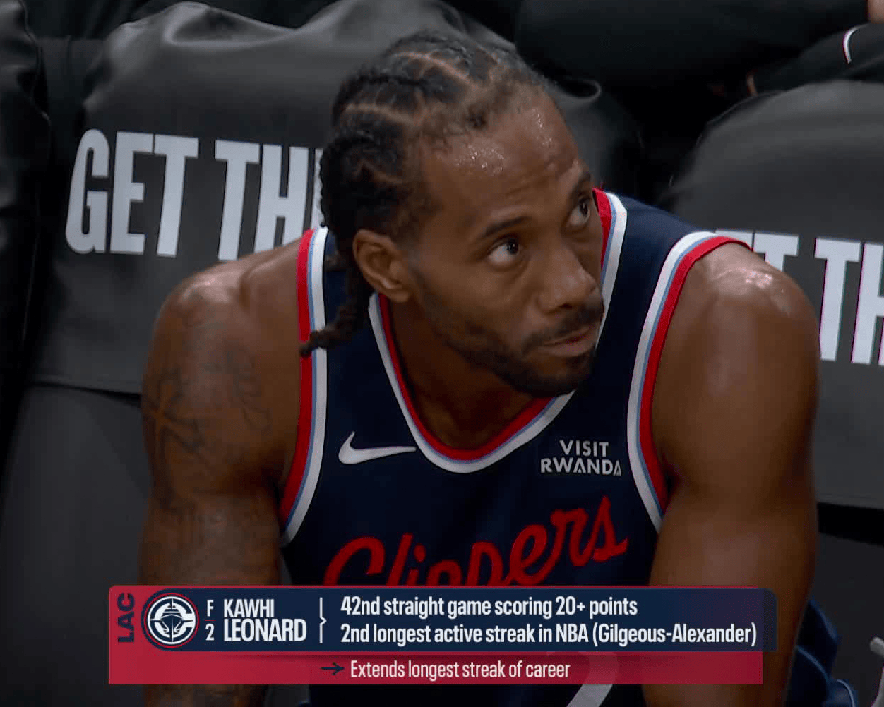 伦纳德如故相连42场砍下20+,络续刷新糊口新记载NBA篮球下注app官方版,同期亦然定约现有第二长记载,亚历山大126场第一。