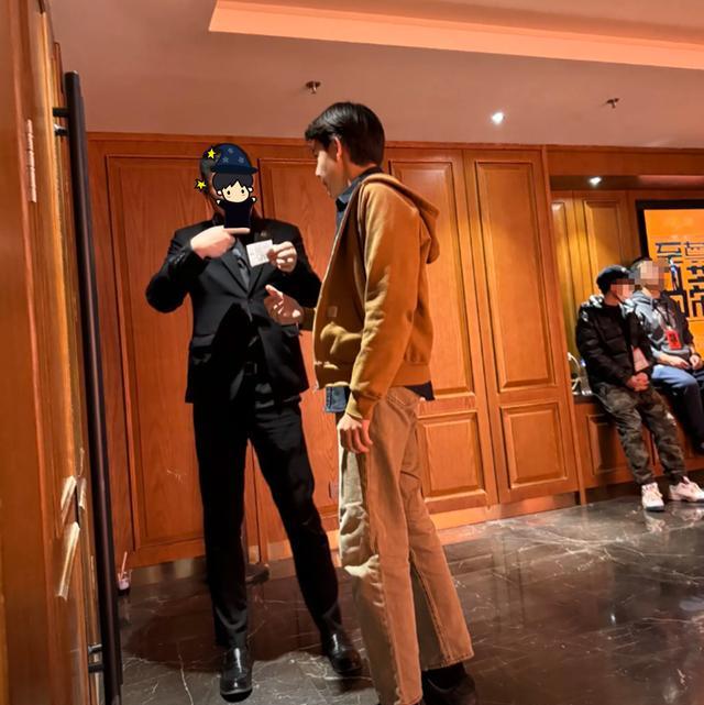 独自现身电影院的诺一,侧身馈遗的他似乎在与右侧穿玄色西服的职责主谈主员相易,四肢当然,心思专注。