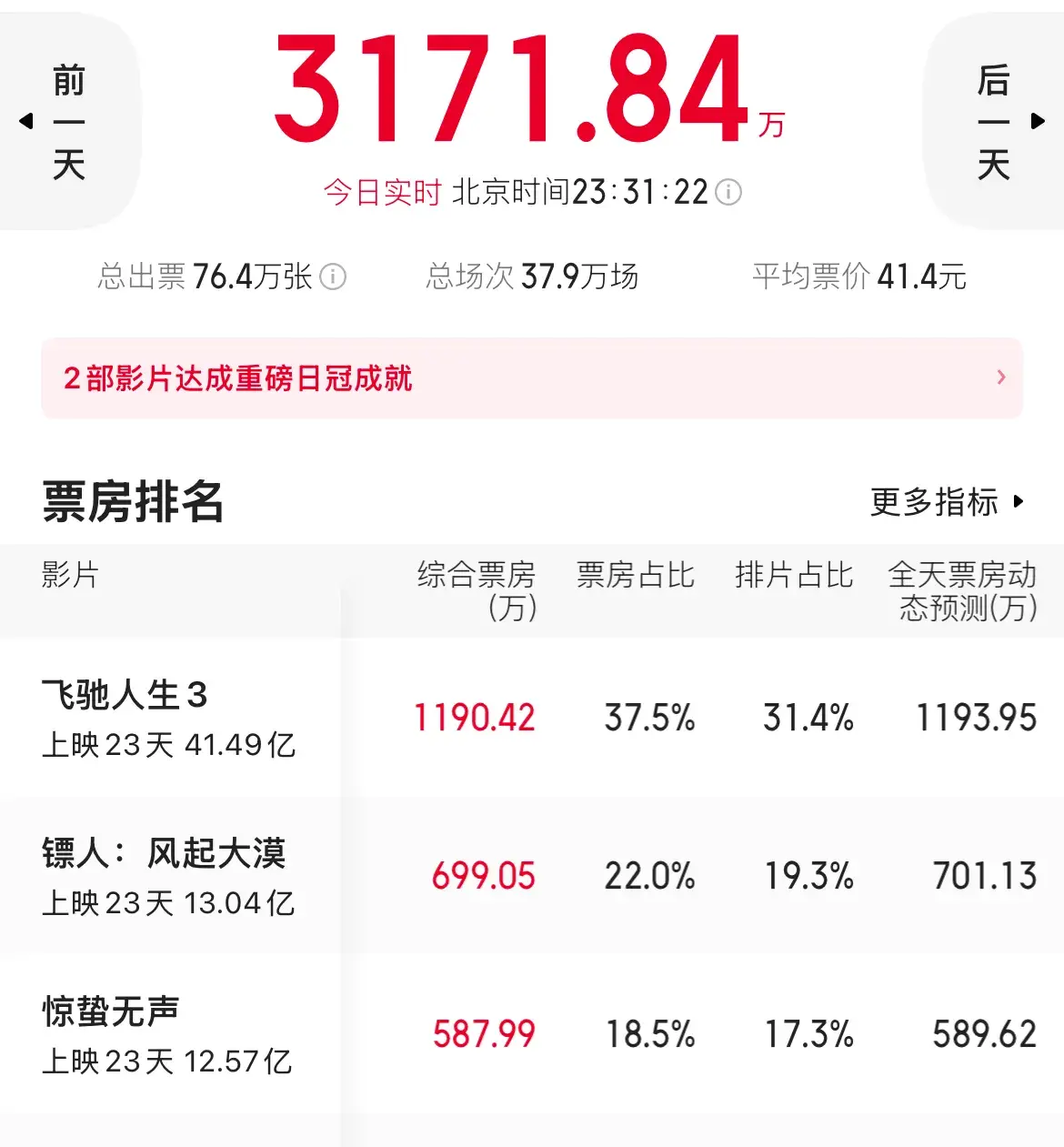 阻挡到11号晚上24点,它单日又砍下1190万,排片占比31.4%,票房占比却冲到了37.5%,上座率照样稳得很。