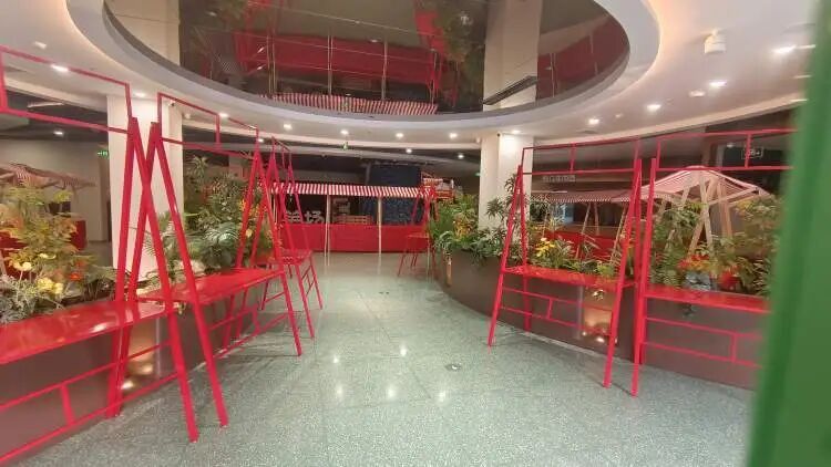 据责任主说念主员先容,在德云社新戏院开业技能,大家影剧院在一楼会有一个快闪市集,时辰是从3月18日到22日,市集展位情景包括非遗手工艺品、小饰品、轻餐饮,约莫30个摊位。记者在现场看到了市集展位,展位给与金属材料和红色条纹顶。