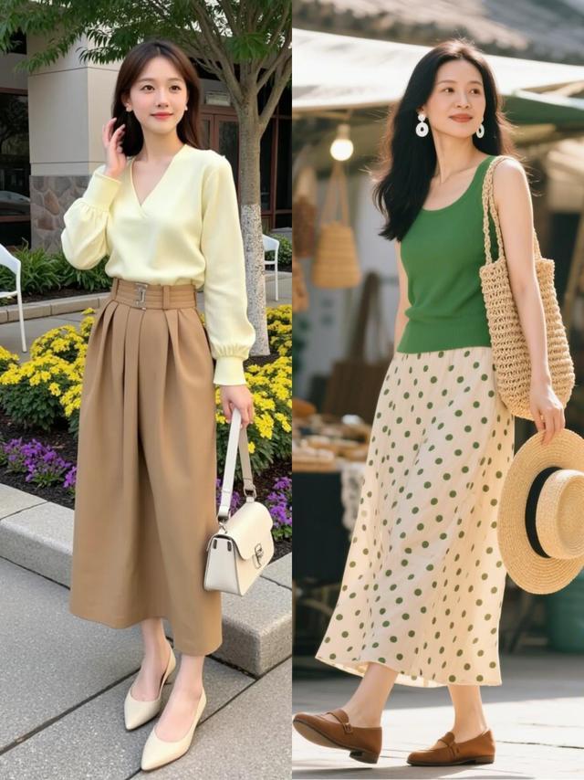 或是选拔软糯的诚恳上衣,不错是鹅黄色的 V 领诚恳毛衣,或是绿色的诚恳背心,搭配上 A 字的半身裙,脚踩一对乐福鞋浅口单鞋,减轻驰松穿出仁和任意感,又能升迁全体造型的搭配立场。