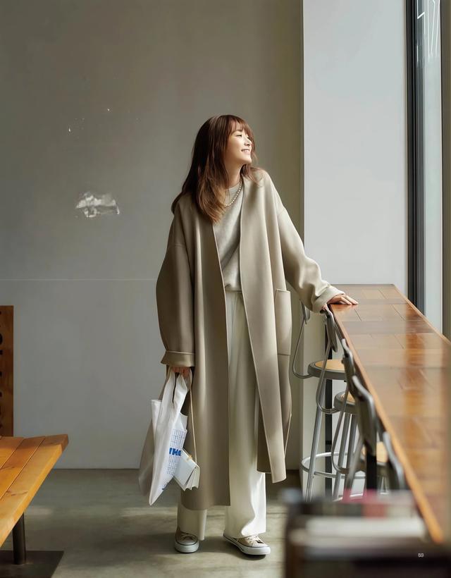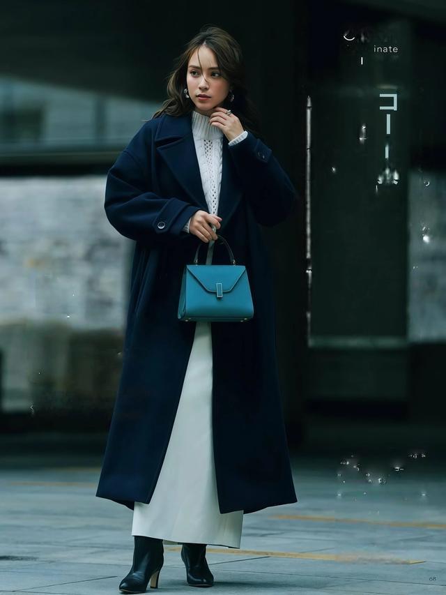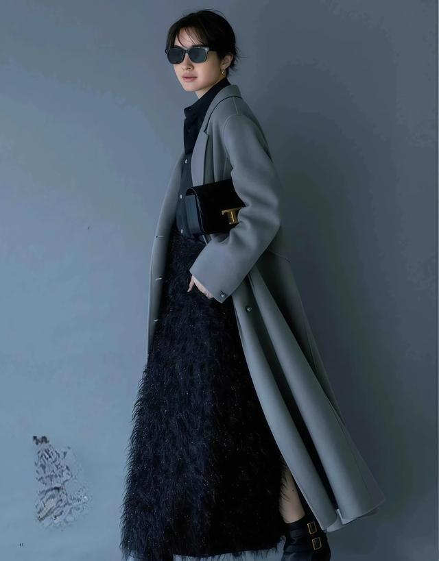 大衣配半身长裙这一组搭配,日杂博主穿出来的后果如实比配裤子更女性化,裙摆本人有弧度有流动感,走路的期间裙摆和大衣的下摆通盘泛动,那种动态的好意思感是裤装莫得目标复制的。
