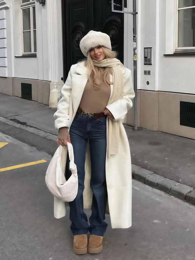 牛仔微喇裤配长大衣这个组合在日杂博主身上出现得越来越多,它解决了一个许多东说念主纠结的问题,念念穿得年青少许但又不念念刻意扮嫩。