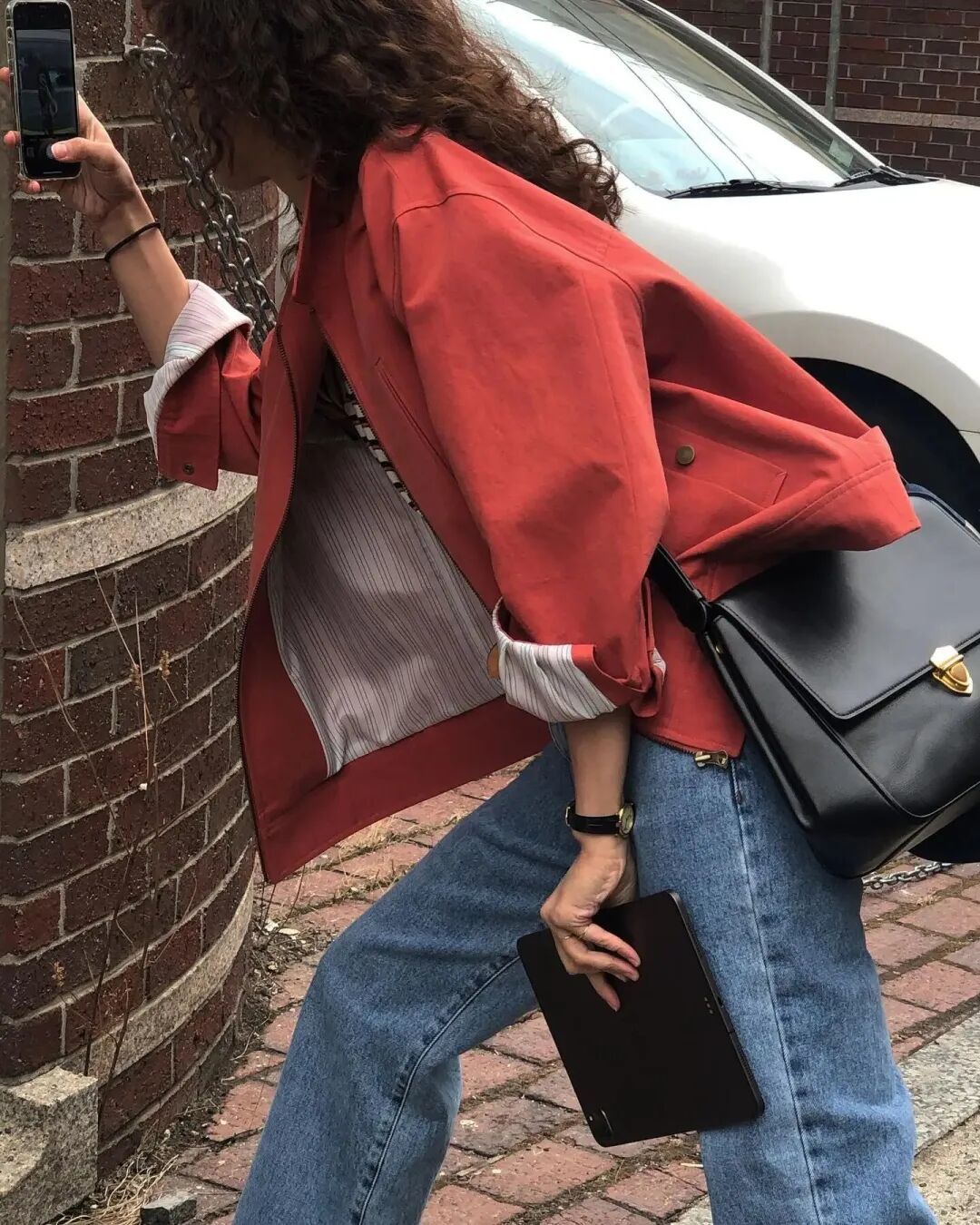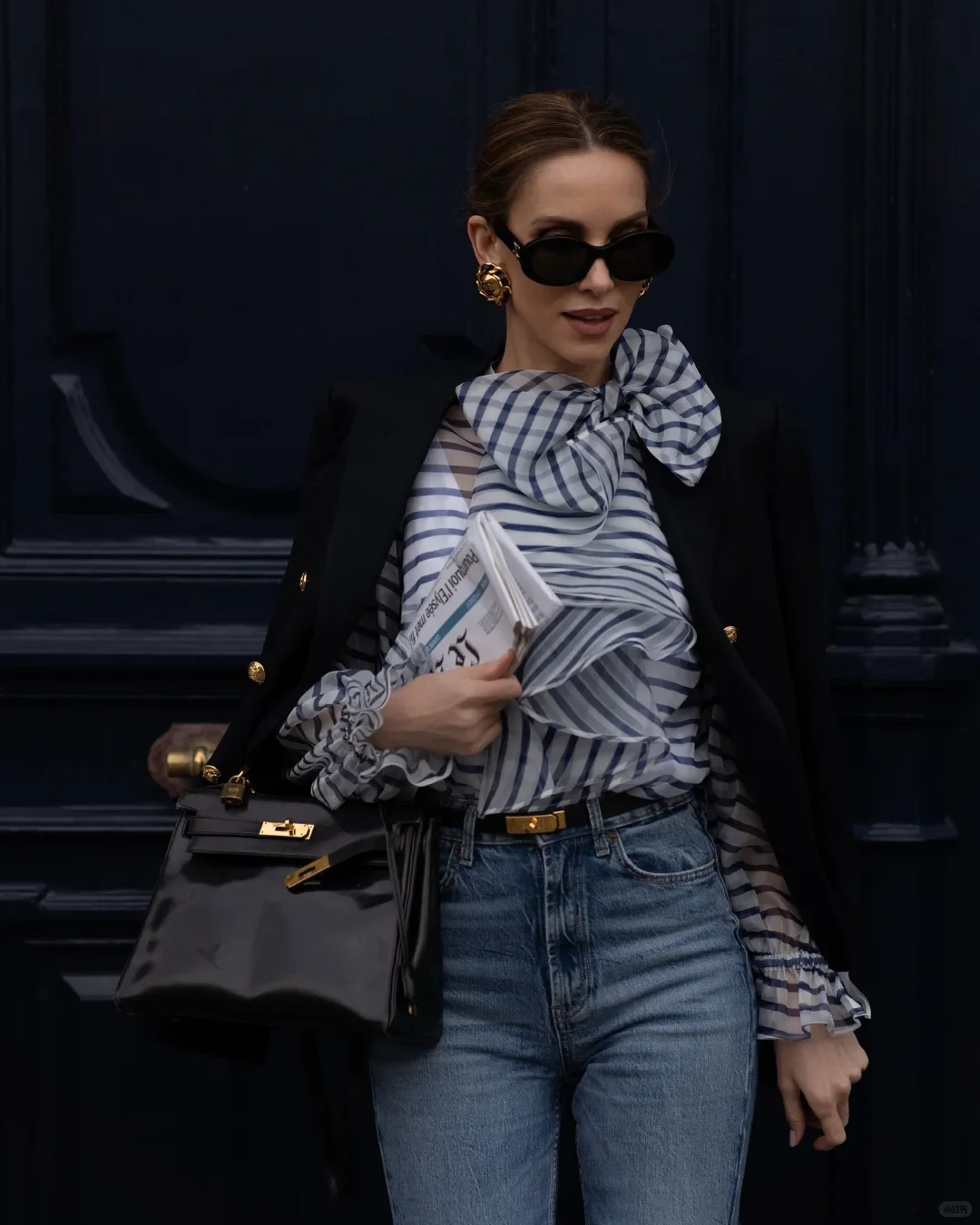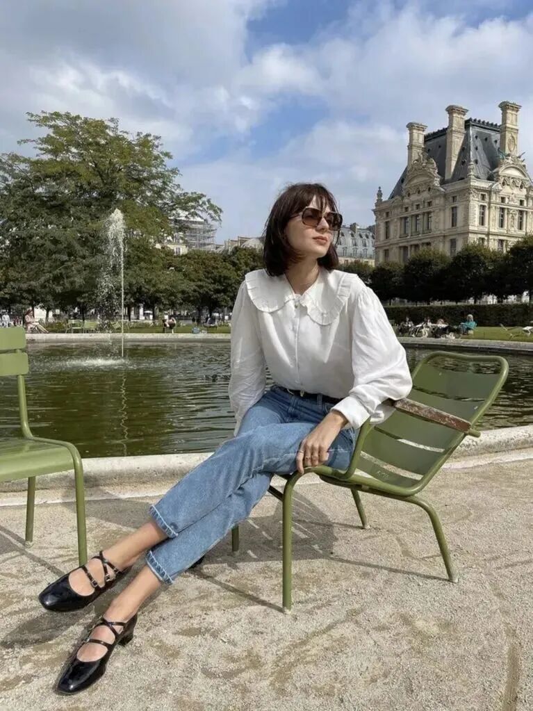 白衬衫配蓝九分牛仔裤,是春日最干净的语法。