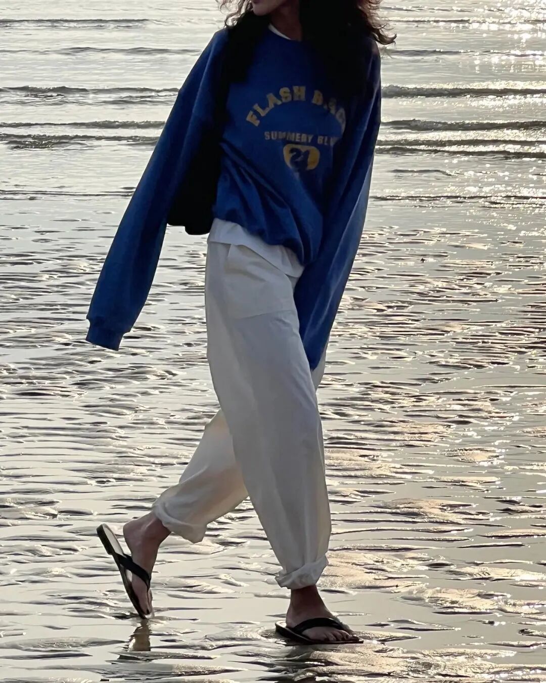 当裙裾翻飞成风潮,仍有东谈主偏疼裤装的服气。