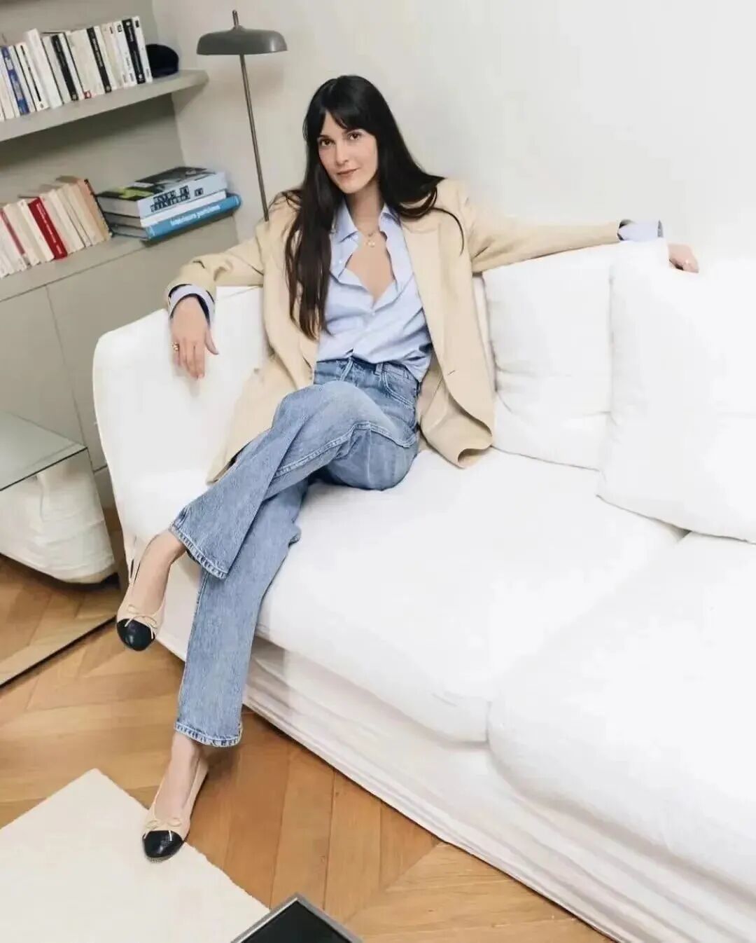 白色小香风外衣配九分牛仔裤,脚蹬Slingback,是春季里最妥帖的优雅。