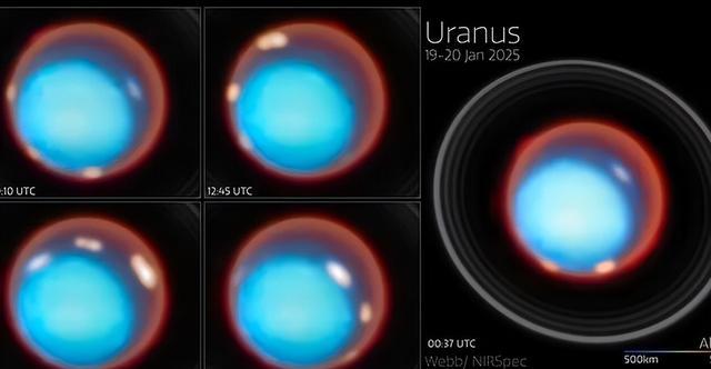 韦伯千里镜盯着天王星看了差未几一整圈(它自转一圈约17小时),专诚盯着云顶上方5000公里的带电层——这层里全是带电粒子,是极光酿成的过错区域。