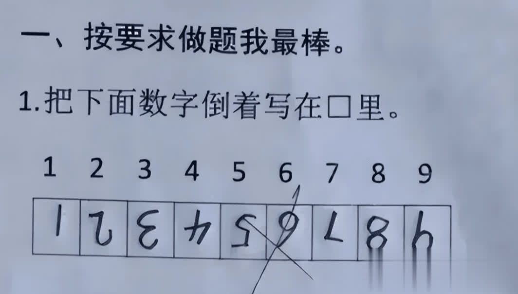 熊孩子竟然将数字“倒着”写在了空格里。