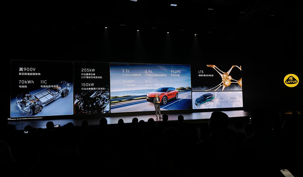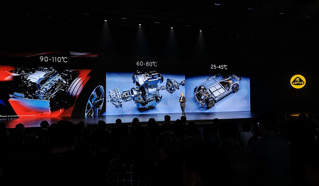 冯擎峰在发布现场,对莲花For Me的本领体系进行了全面解读,包括超混架构、热治理系统、驾控、空气能源学、轻量化等等。