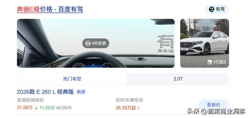 比如出厂价42.99万的2026款E 260 L经典版,当今关连价钱一步下探到了31.99万,平直打了个7.4折附近。