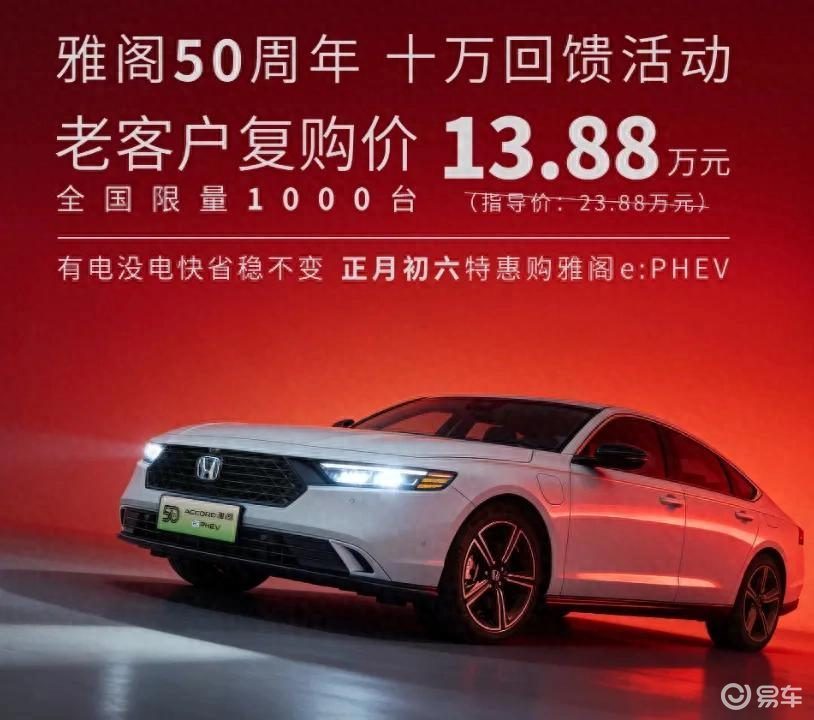 2月春节假期时期,广汽本田瞬息发布“王炸”音信。轱辘哥获悉,为了庆祝雅阁降生50周年,广汽本田官宣老客户复购雅阁e:PHEV车型只需13.88万元,比拟原价23.88万元径直低廉了10万元!不外,仅限量1000台发售,老车主会不会抢破头?