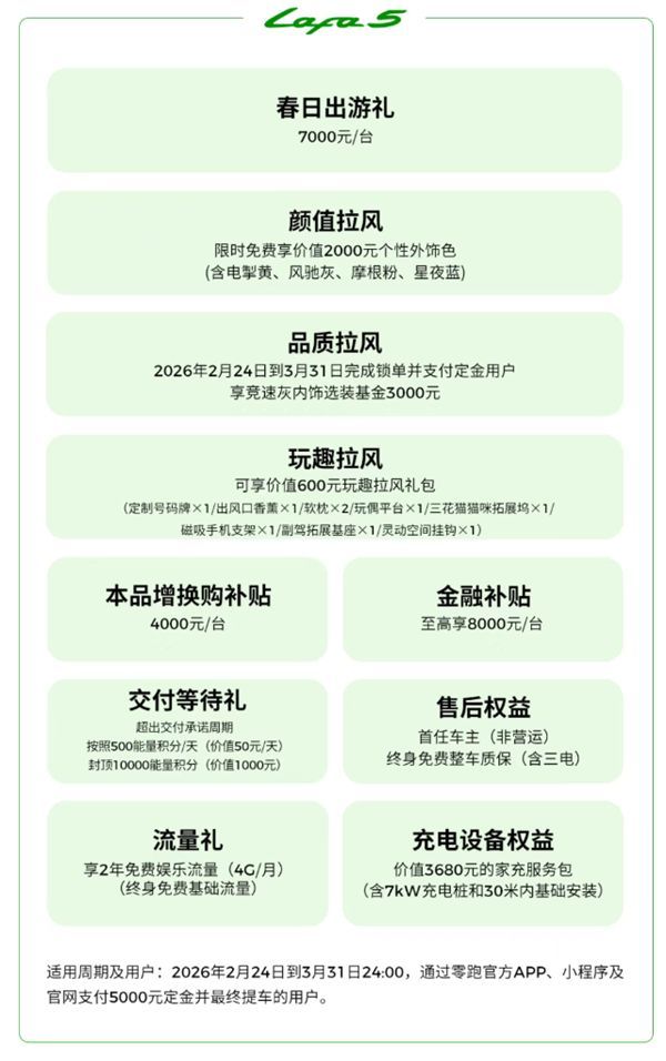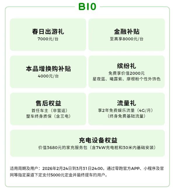 快科技2月28日音问,前年零跑执续热销,成为了新势力销冠,本年势头不减,执续稳居第一梯队,销量正劲之时,零跑推出"开春立地零跑"3月购车策略,全系车型概述权力至高可达46000元。