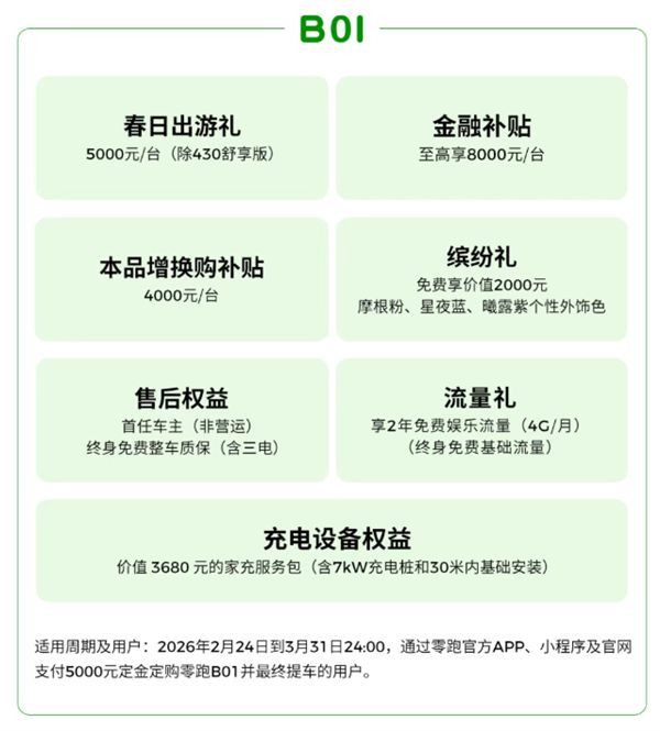 3月购买B10可享至高7000元春日出游礼、4000元增换购补贴及至高8000元金融补贴的三重福利,此外,价值2000元的星夜蓝、曦露紫等潮水配色限时免费,加之价值3680元的家充管事包及整车终生质保,让这款"国民车"的品价比再次跃升。
