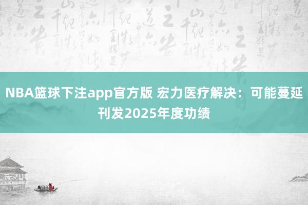 NBA篮球下注app官方版 宏力医疗解决:可能蔓延刊发2025年度功绩