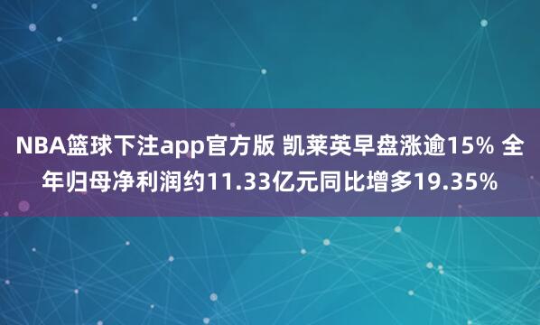 NBA篮球下注app官方版 凯莱英早盘涨逾15% 全年归母净利润约11.33亿元同比增多19.35%