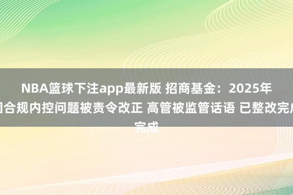 NBA篮球下注app最新版 招商基金:2025年因合规内控问题被责令改正 高管被监管话语 已整改完成