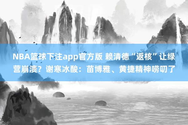 NBA篮球下注app官方版 赖清德“返核”让绿营崩溃?谢寒冰酸:苗博雅、黄捷精神唠叨了
